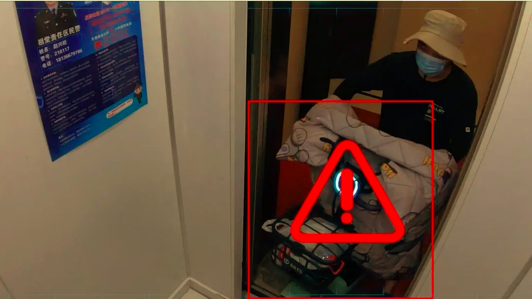 在電梯間和小區(qū)樓道安裝天翼云眼AI攝像頭,可精準(zhǔn)識(shí)別電動(dòng)車,并對(duì)其進(jìn)行全流程跟蹤和實(shí)時(shí)監(jiān)測(cè)。一旦有人推著電動(dòng)車進(jìn)入樓道、電梯或是其它禁停的監(jiān)控區(qū)域,就會(huì)自動(dòng)觸發(fā)語音提醒:“電動(dòng)車禁止進(jìn)入電梯”“請(qǐng)不要在此處停放電動(dòng)車”,并且告警信息會(huì)實(shí)時(shí)同步至物管后臺(tái),以便物業(yè)管理人員及時(shí)發(fā)現(xiàn)情況并制止危險(xiǎn)行為。