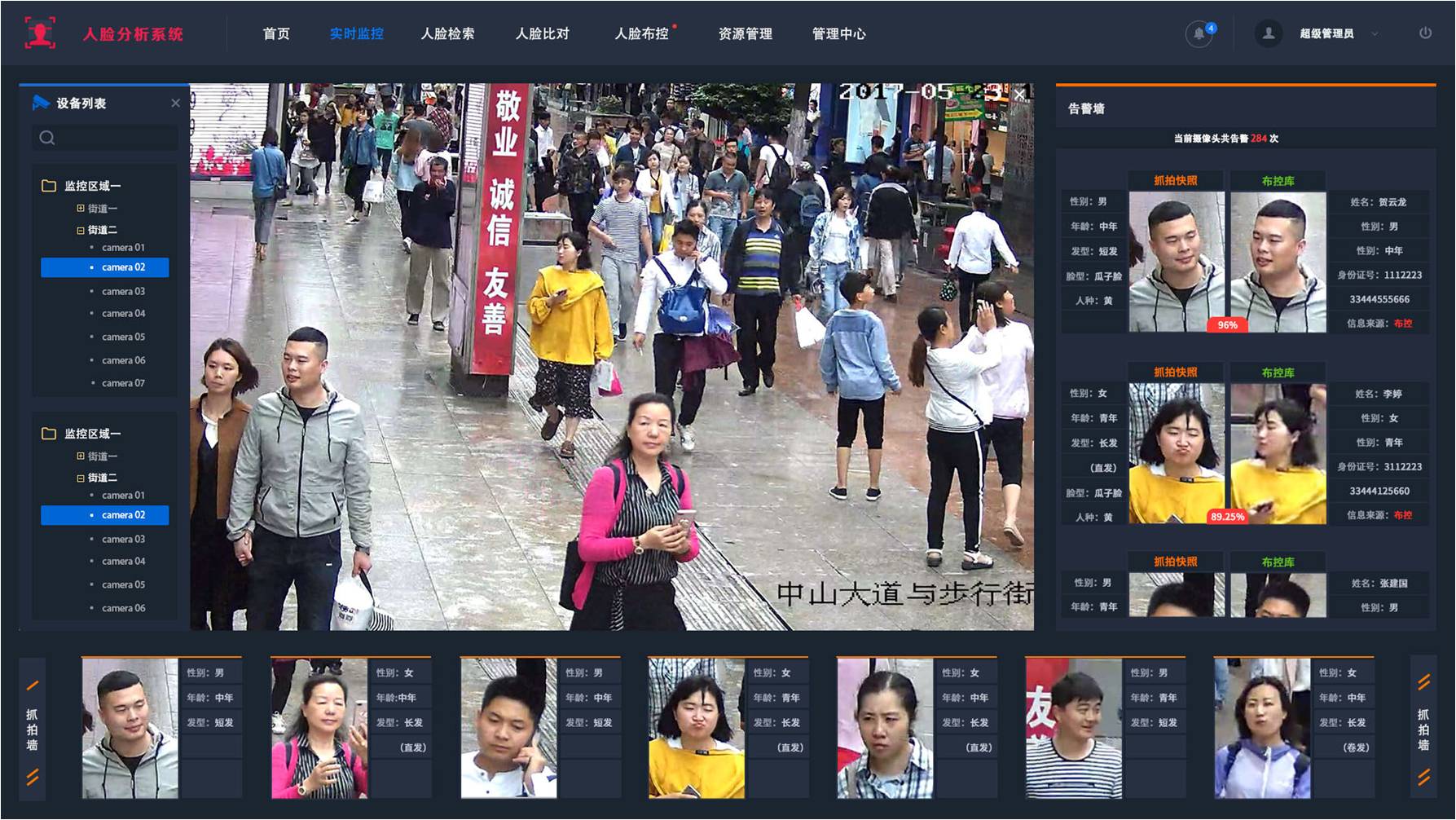 系統檢測到全國在逃人員或重點布控人員時,自動發出預警信息,提醒相關管理人員或安保人員,同時記錄下該全國在逃人員或重點布控人員的現場照片信息,便于后繼的跟蹤與記錄查詢。